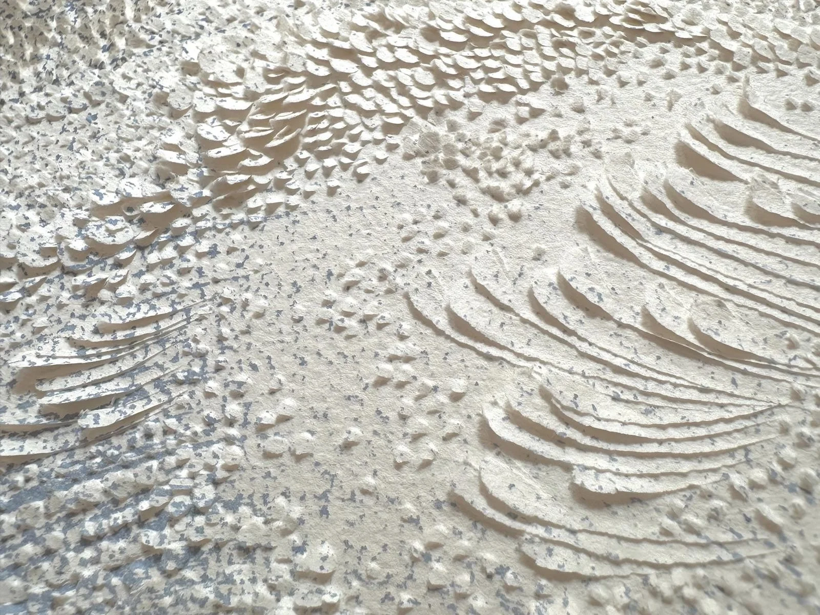During a visit to Japan in December 2014, she discovered paper sculpture, a revelation that transformed her artistic path. Fascinated by the finesse and precision of the art, she incorporated its principles into her work. Eleven years in Asia left a lasting impact: the delicacy of Japanese art and the depth of Korean Dansaekhwa inspire her quest for balance between repetition and mindfulness, enriching her creative approach with a new dimension.