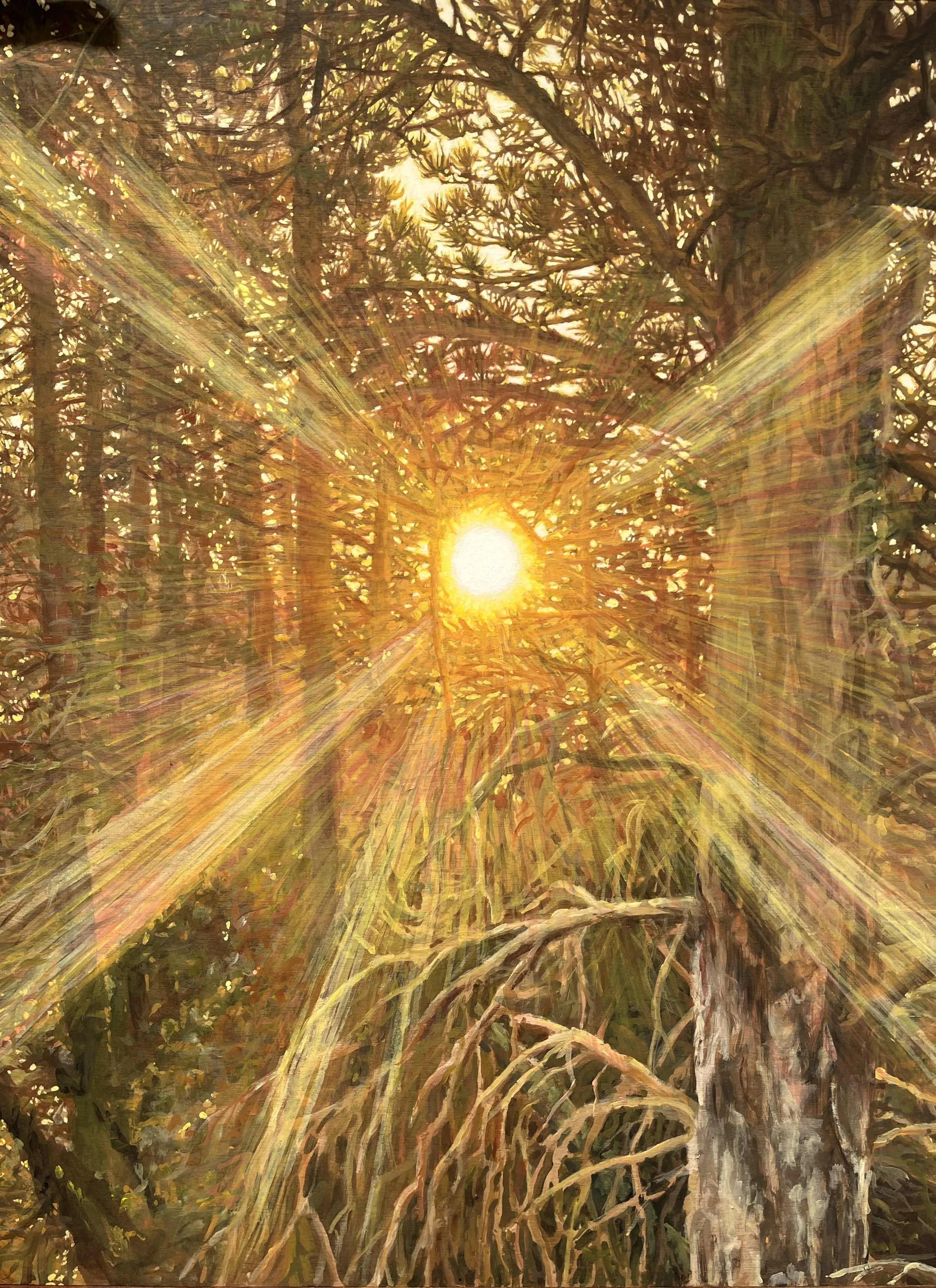 "Soleil entre les branches", acrylic on wood , 54 x 41,5 cm